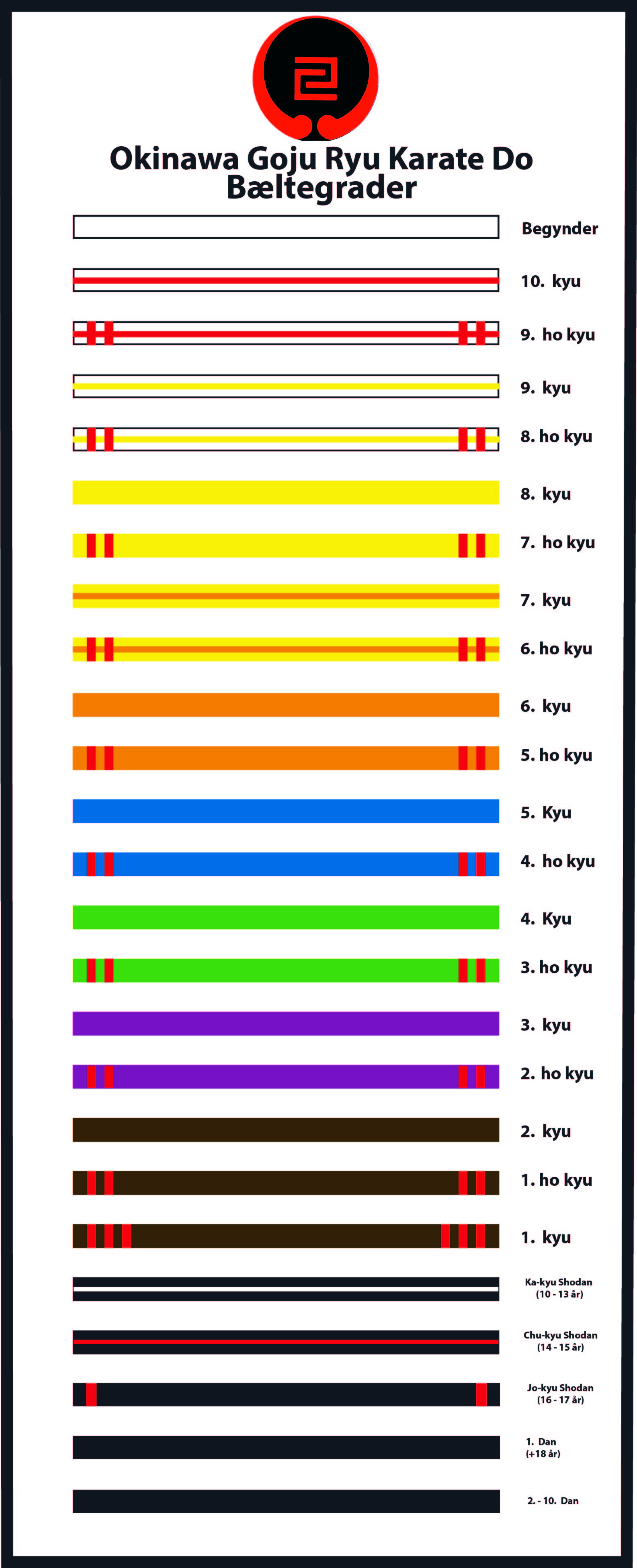 I Silkeborg Karate Skole anvendes følgende bæltegrader.