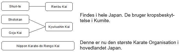 Senere udvikledes der mange nye former, alle med grundlag i de traditionelle stilarter. SHORIN-RYU blev senere opsplittet i adskillige varianter, mens GOJU-RYU i det grundlæggende stadig var det samme stilistisk. I hovedlandet, Japan, udviklede GOJU-RYU sig til en organisation kaldet: GOJU-KAI, og kombinationen GOJU-RYU og SHORIN-TE blev til stilarten SHITO-RYU.